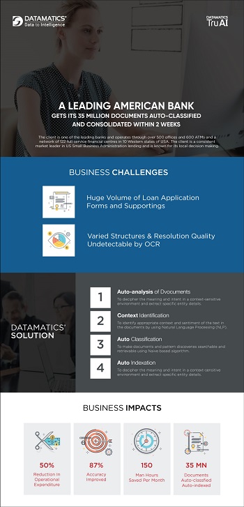 A leading American bank had 35M documents automated, 150 FTE saved and 87% accuracy improved all within 2 weeks.