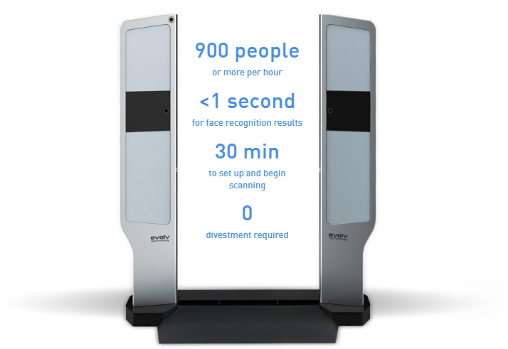 Evolve Technology is an AI-based system that enables threat screening on a huge scale. The technology utilizes artificial intelligence and facial recognition software to analyze live footage of approaching visitors to determine if they are approved persons, such as regular visitors, VIPs, employees and other persons who should be granted entry.