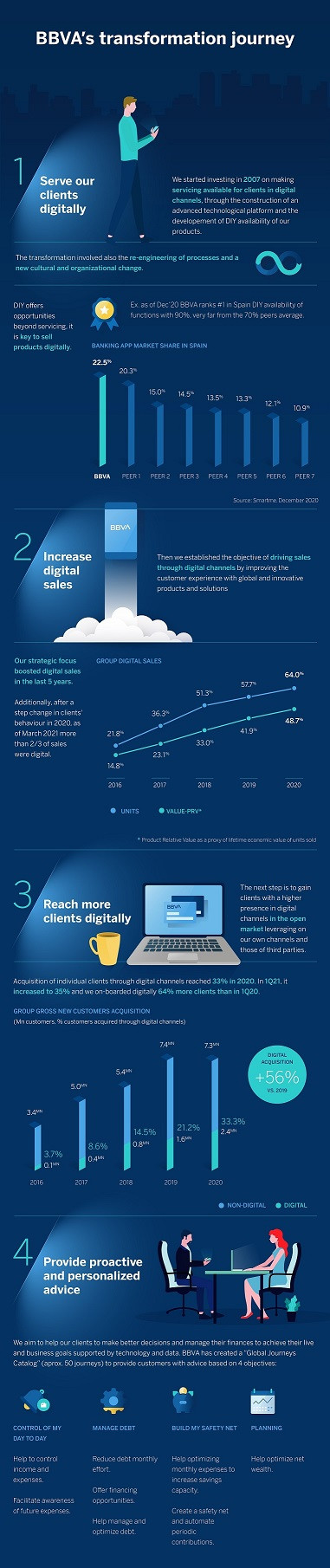 BBVA’s (Banco Bilbao Vizcaya Argentaria, S.A.) digital transformation began all the way back in 2007. The goal was to deepen its connection with its customers through the delivery of self-service, digital services.