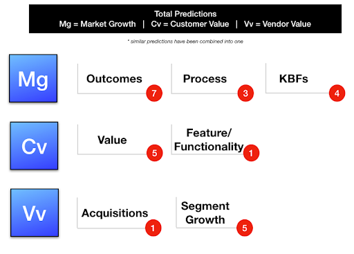 This is just one way of looking at these predictions, it’s not perfect and likely I may have missed some. What is interesting to see is that there are so few predictions on what will ‘directly’ impact and drive customer value.