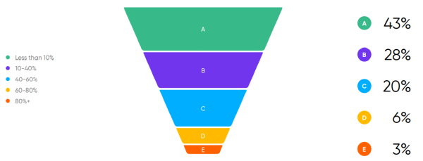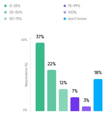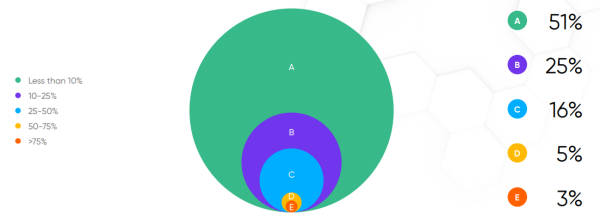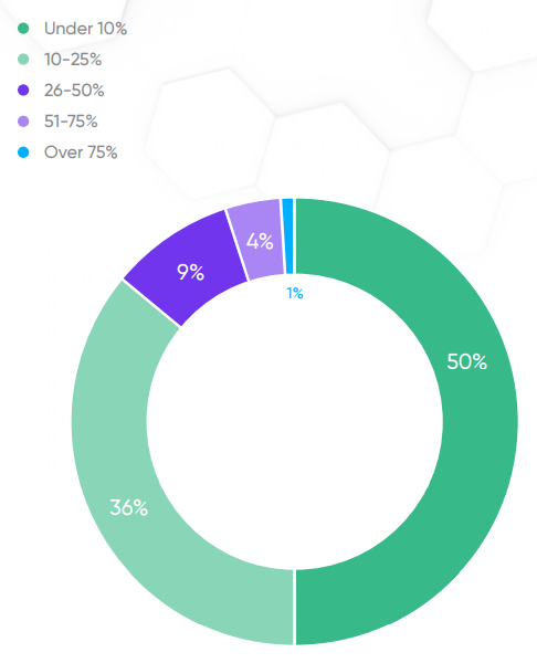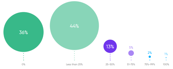 Furthermore, at most companies, only a very small percentage of employees are currently leveraging intelligent automation. Almost 93% of our respondents said that less than half of their enterprise workforce utilized IA.