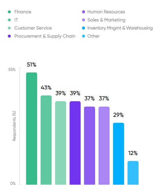 Though organizations are clearly branching out into new areas when it comes to future deployments, at 51%, finance is significantly ahead of the pack when it comes to current applications.