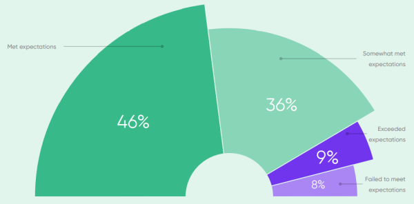 As a result, RPA has a rather high failure rate of around 50- 30% and, of those we surveyed, 60% said less than half of RPA deployments met business expectations.