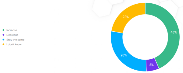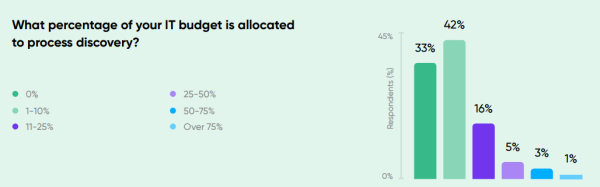 With digital transformations on the rise, this will likely change. As companies look to automate more and more processes, the need to optimize process discovery processes, both in terms of efficiency and effectiveness, will intensify. This is confirmed by budget outlooks with 43% of our respondents saying they expect their process discovery automation budgets to increase over the next year.