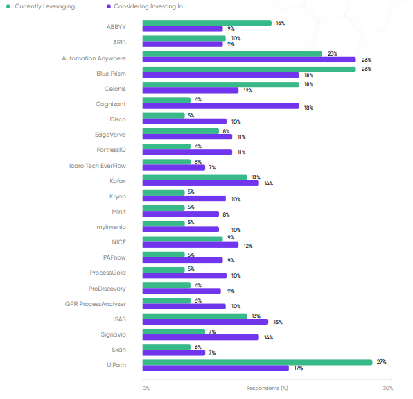Though we only inquired about automated process discovery tools, a related category of solutions, process mining tools, are also experiencing significant growth. In fact, according to recent reports, the global process mining software market size is expected to reach $3.5 billion by 2026, rising at a market growth of 39. 9% CAGR during the forecast period.