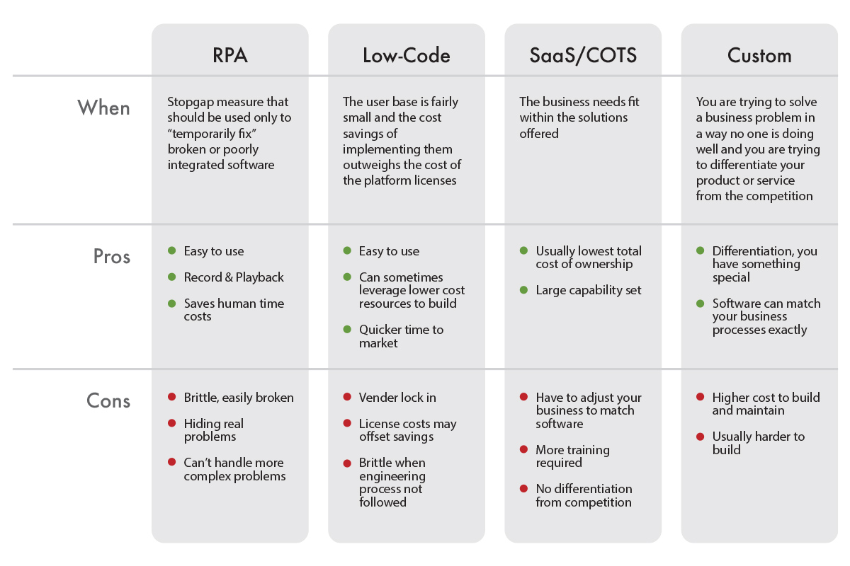*Above image sourced from https://dzone.com/articles/rpa-low-code-saascots-custom-which-is-right-for-yo